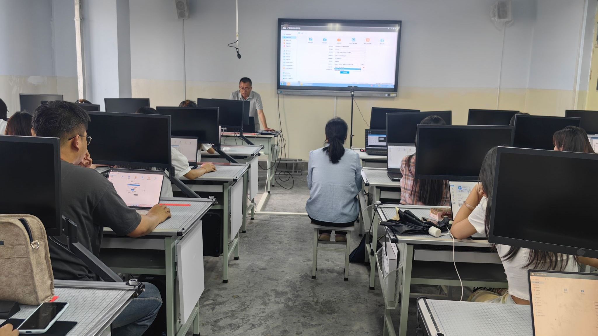 报告会上,张振就《甘肃省建设工程工程量清单计价规则》《建设工程工程量清单计价标准》等修订的核心要点及条文进行了解读,并以实际工程为案例对广联达计价软件操作的工程设置、模型导入、套定额做法、添加措施项目、人材机价格调整等步骤及注意事项向师生进行全面讲解。在互动环节,张振对员工所做计价文件进行深入解析和指导。